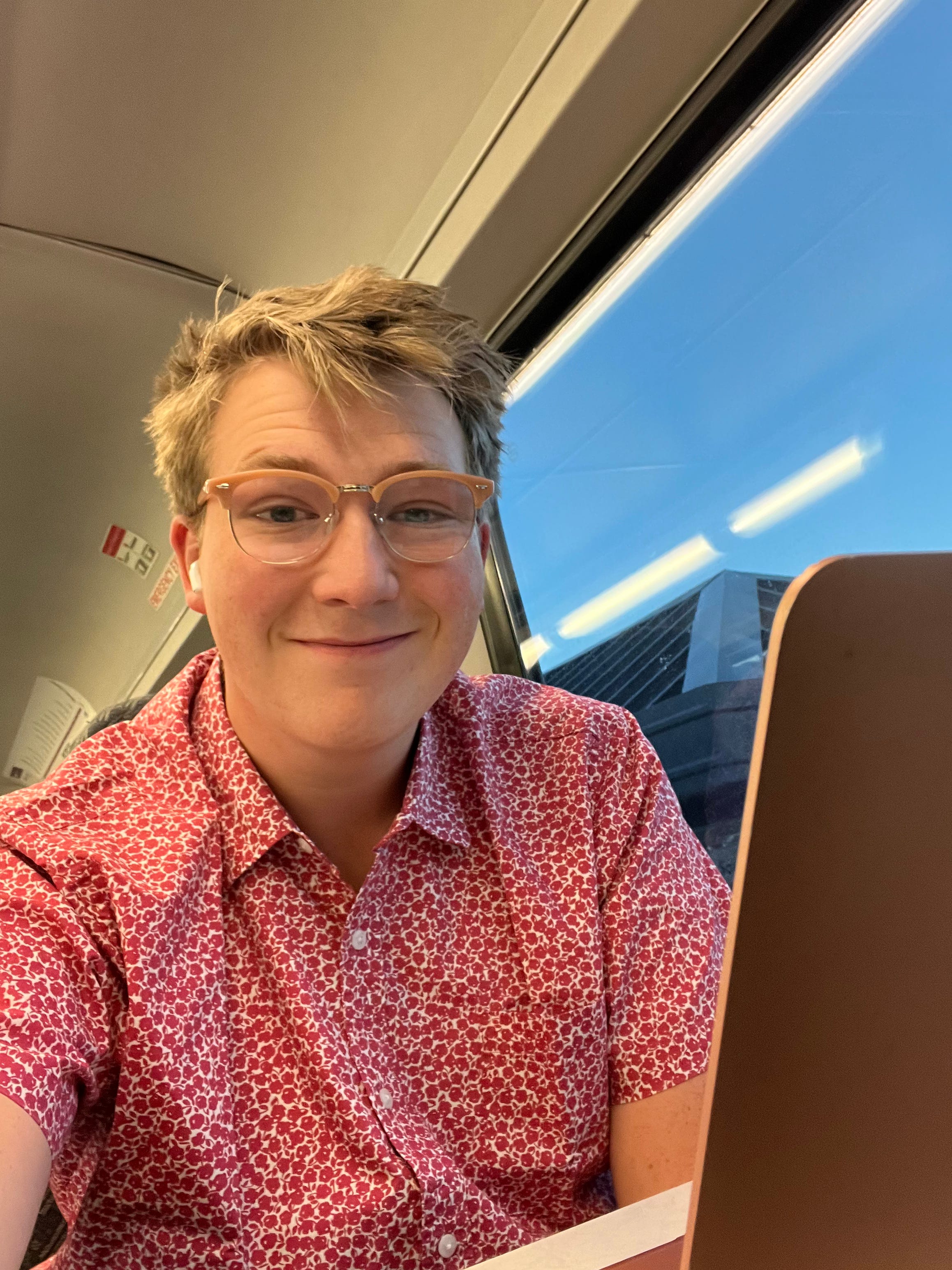 I'm reporting this week from one of those coveted chairs with an end table and an outlet underneath. This spot is the undisputed king among the different seats in the train hierarchy. I've managed to claim the seat that keeps watch over the entire commute, and when it becomes available, you've got to pounce on it. You can say I'm launching a full-scale attack this fine Friday morning.